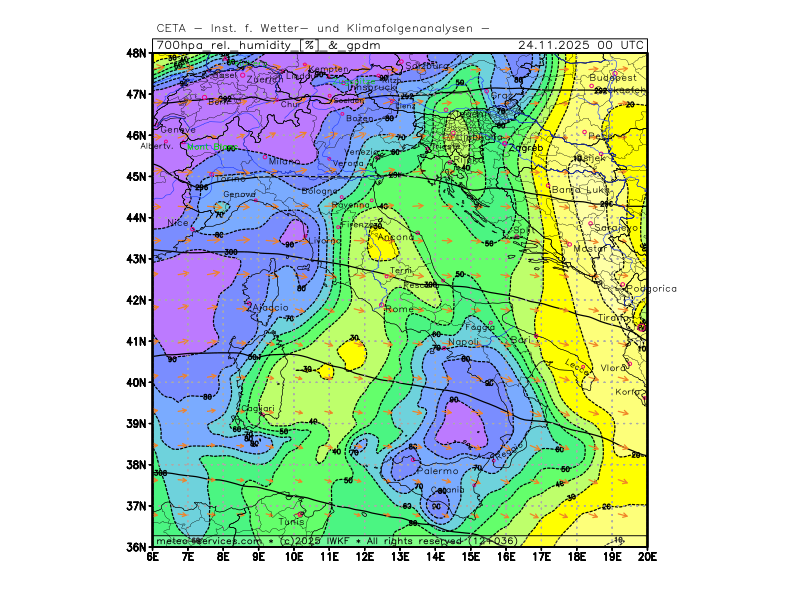 700hpa rel. humidity and geop. height