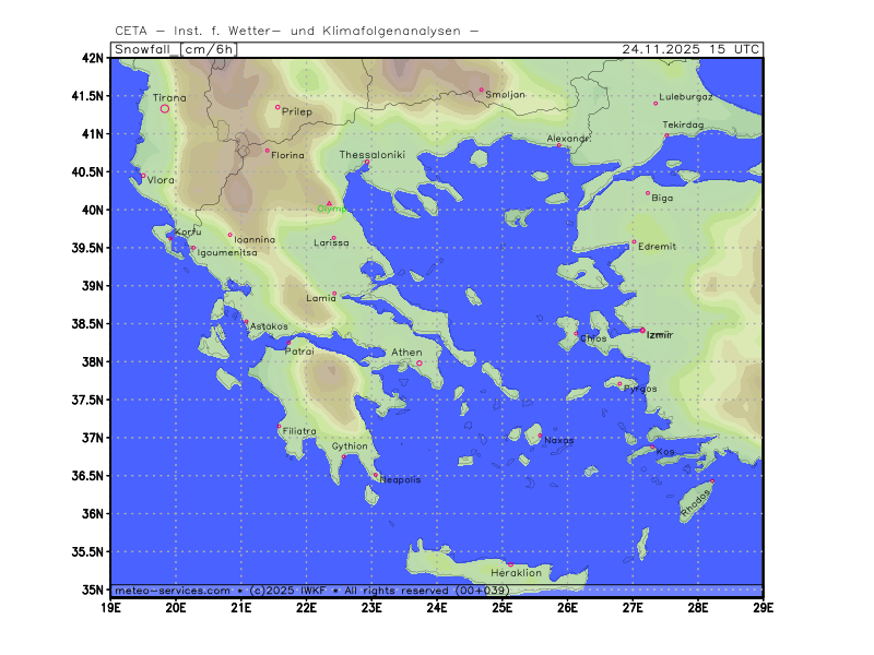 Schneefall in 6 Stunden in cm