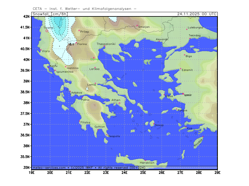 Schneefall in 6 Stunden in cm